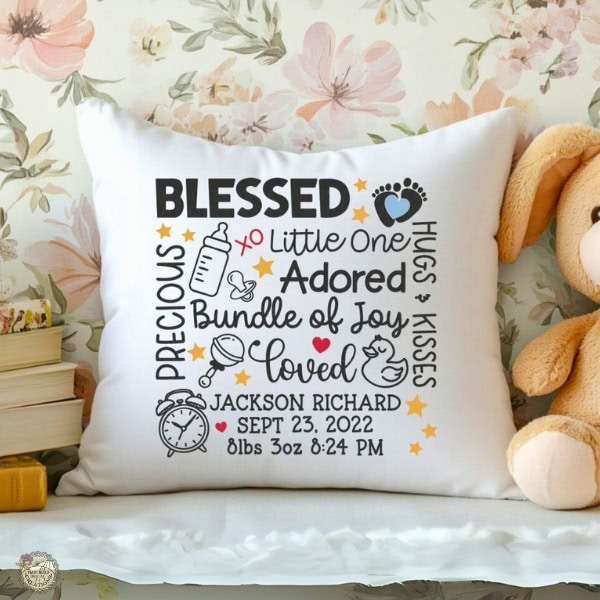 • Tote Bag – Another great baby shower gift to use this SVG on would be a tote bag. Every mom has a great diaper bag, but having a tote bag for extra diapers or for a grab and go mini diaper bag is always nice. I used to keep an extra bag with diapers and other necessities in a variety of places.