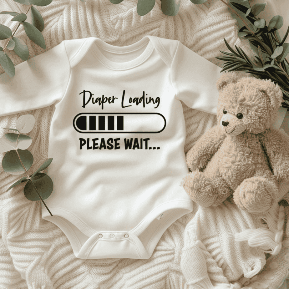 t’s SVG Design Squad time again, and this month’s theme is all about baby showers! Whether you’re planning a sprinkle, showering a friend, or creating handmade gifts for a new arrival, this adorable and cheeky “Diaper Loading” SVG is just what your crafting queue needs. This free baby shower SVG is designed to fit perfectly on a baby bodysuit or onesie, but it also works great for baby shower gift bags, diaper cakes, banners, or even custom cards. The simple and fun design is easy to cut and weed, making it beginner-friendly and ideal for any last-minute baby gift crafting!